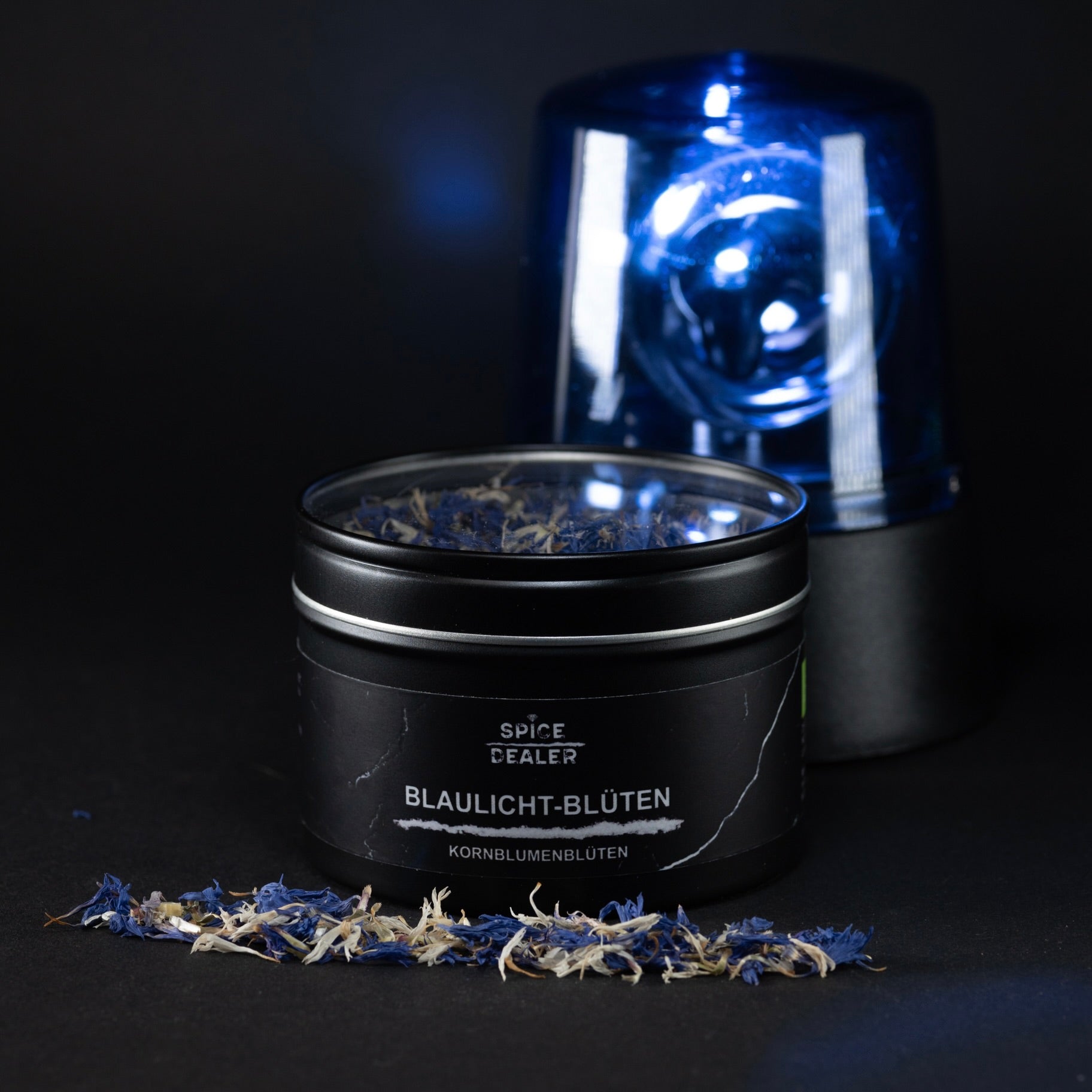 Auch Blüten in den passenden Farben – in blau & weiß natürlich, dürfen beim SPICEDEALER im Sortiment nicht fehlen. Die blau/weißen Blüten sind natürlich viel zu schön um sie anzuzünden oder um sie zu verheizen. Der SPICEDEALER hat eine bessere Idee für die wunderschönen Blüten: Mit den "BLAULICHT-BLÜTEN" kannst du alle deine süßen und deftigen Gerichte dekorieren. So hast du die zwei Farben immer auf deiner (Teller-)-Seite. Für alle Freunde, Helfer, Blütenfans, Hobbygärtner und Blütenjunkies.