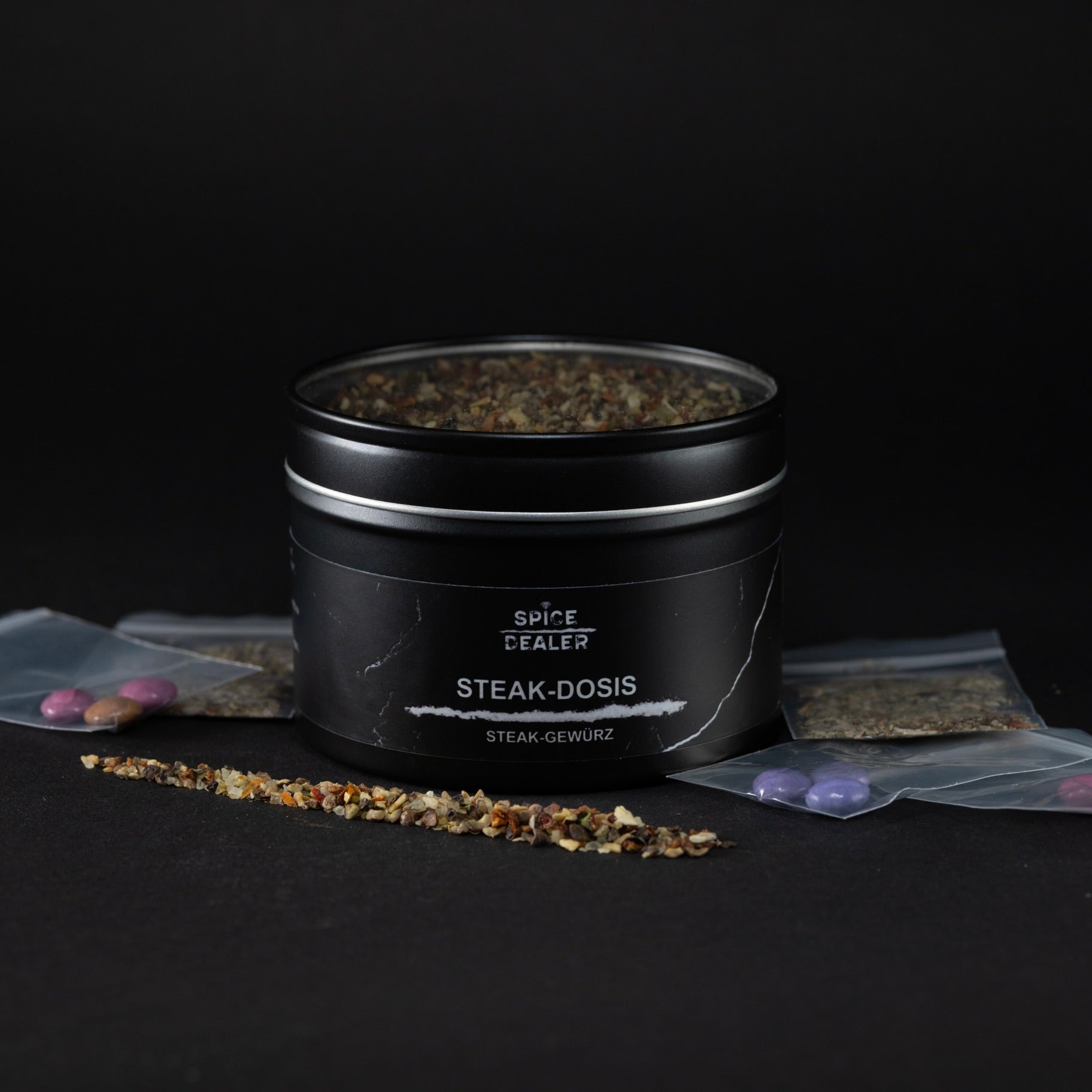 Bist du auch auf der Jagd nach dem nächsten Kick für dein Steak? Unser "STEAK-DOSIS" Steakgewürz ist das einzige Spice, was du legal nachkaufen kannst und was trotzdem süchtig macht.