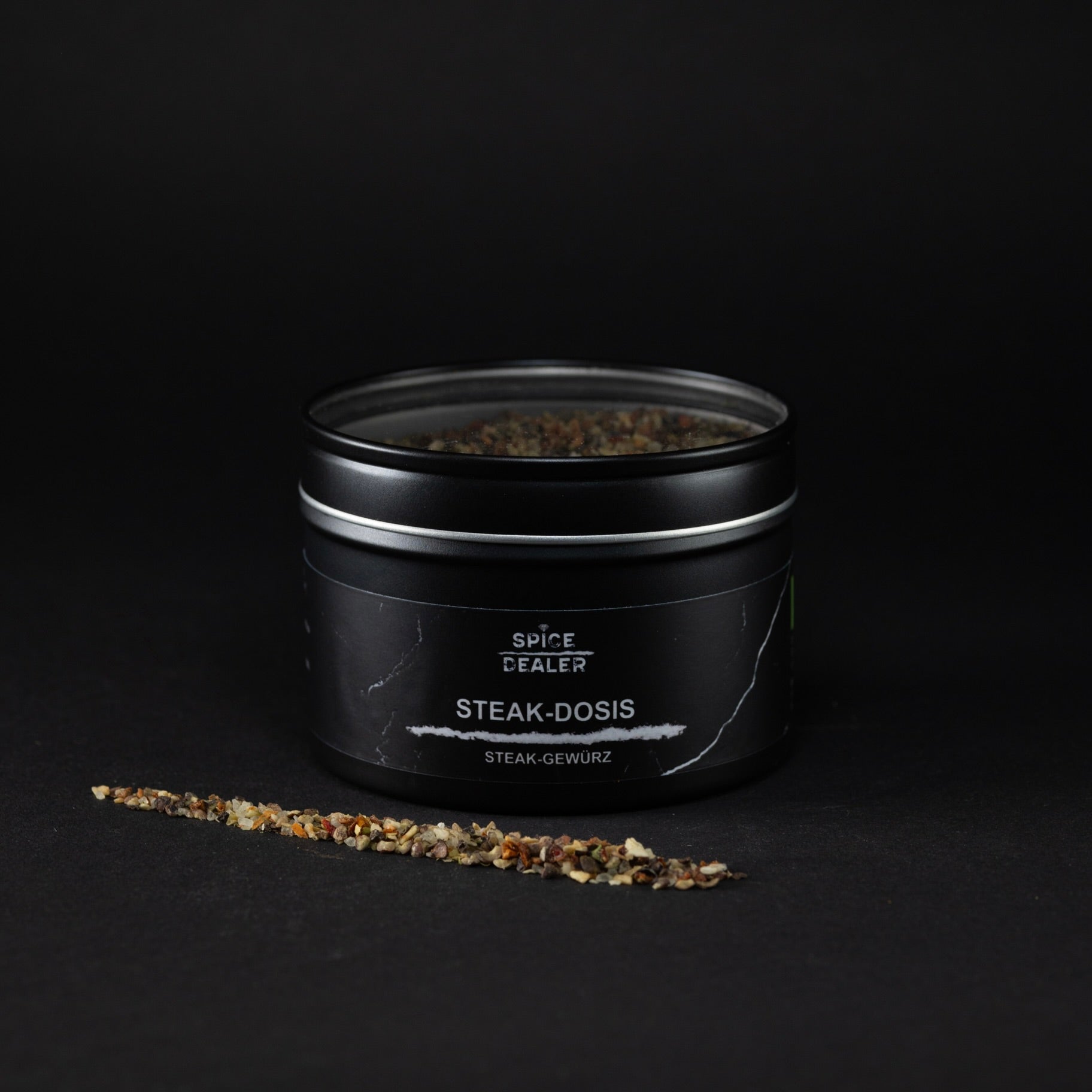 Für dein Steak nur das Beste: Das Bio Steakgewürz, die STEAK-DOSIS vom SPICE DEALER bringt dir den Kick auf den Grill. Handgemachte Gewürzmischung, voll auf Bio und ohne künstliche Tricks. Ob Rindersteak, T-Bone, Filet oder vegane Alternativen – hier knallt der Geschmack.